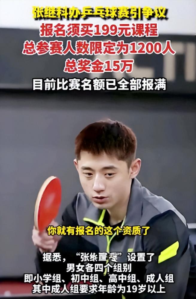 張繼科以個人名義主辦乒乓球賽事,單站最高獎金15萬元吸引超1200人報名。