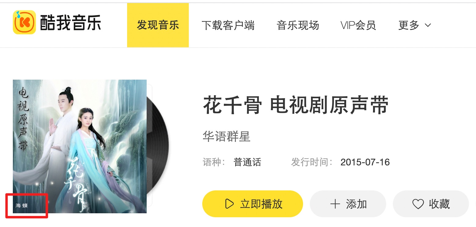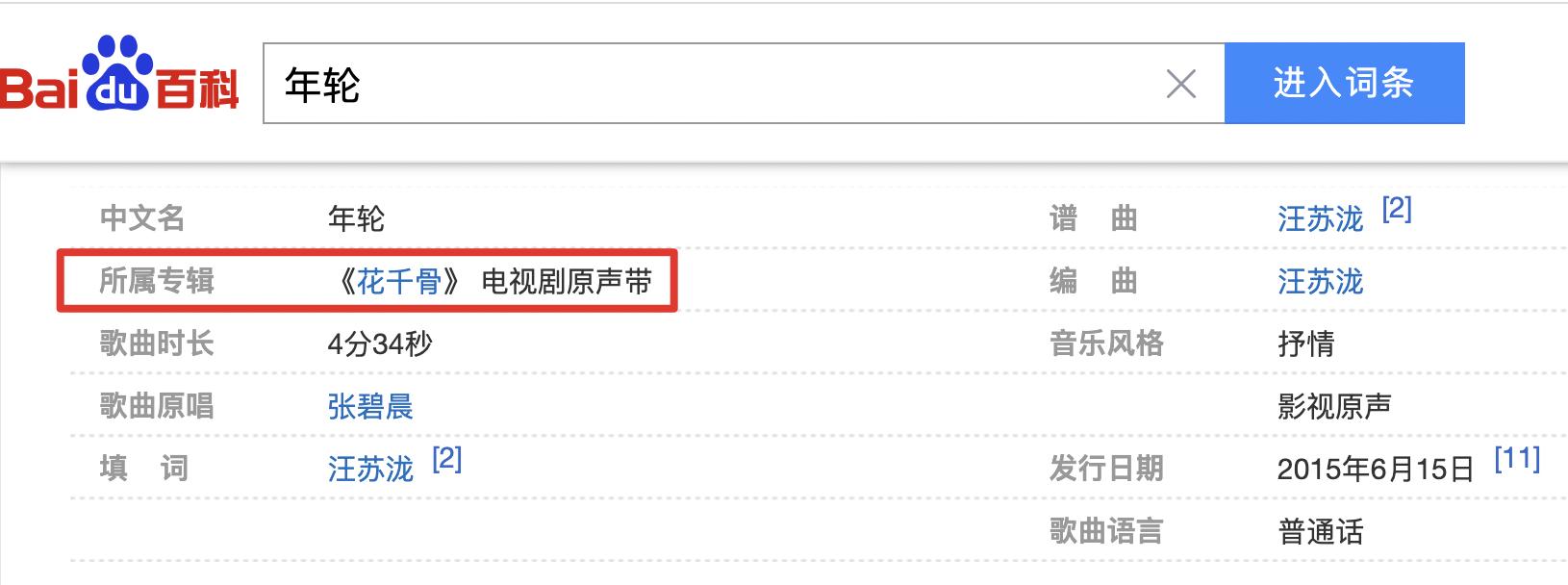 公開資料顯示,海蝶音樂是電視劇 《花千骨》 的音樂制作方及部分歌曲的發行方,主要負責劇中音樂創作、發行及推廣。而《年輪》 是電視劇 《花千骨》的插曲,所屬專輯為《花千骨》電視劇原聲帶。