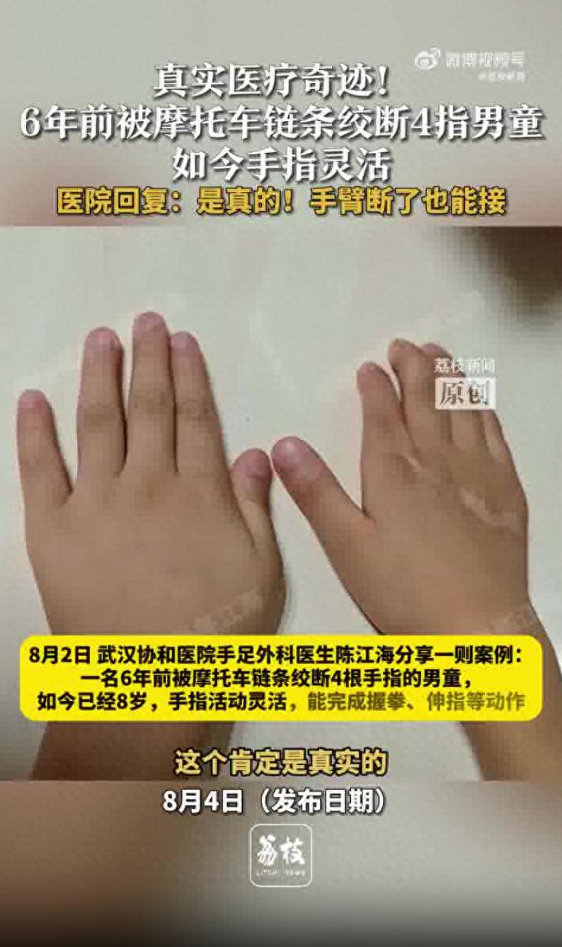 咱今天嘮嘮這娃的事兒,可神了!六年前,這娃讓摩托車鏈條給絞斷了四根指頭,那會兒娃才兩歲多,手指頭都快斷光了,整個手看著稀巴爛,嚇死個人。