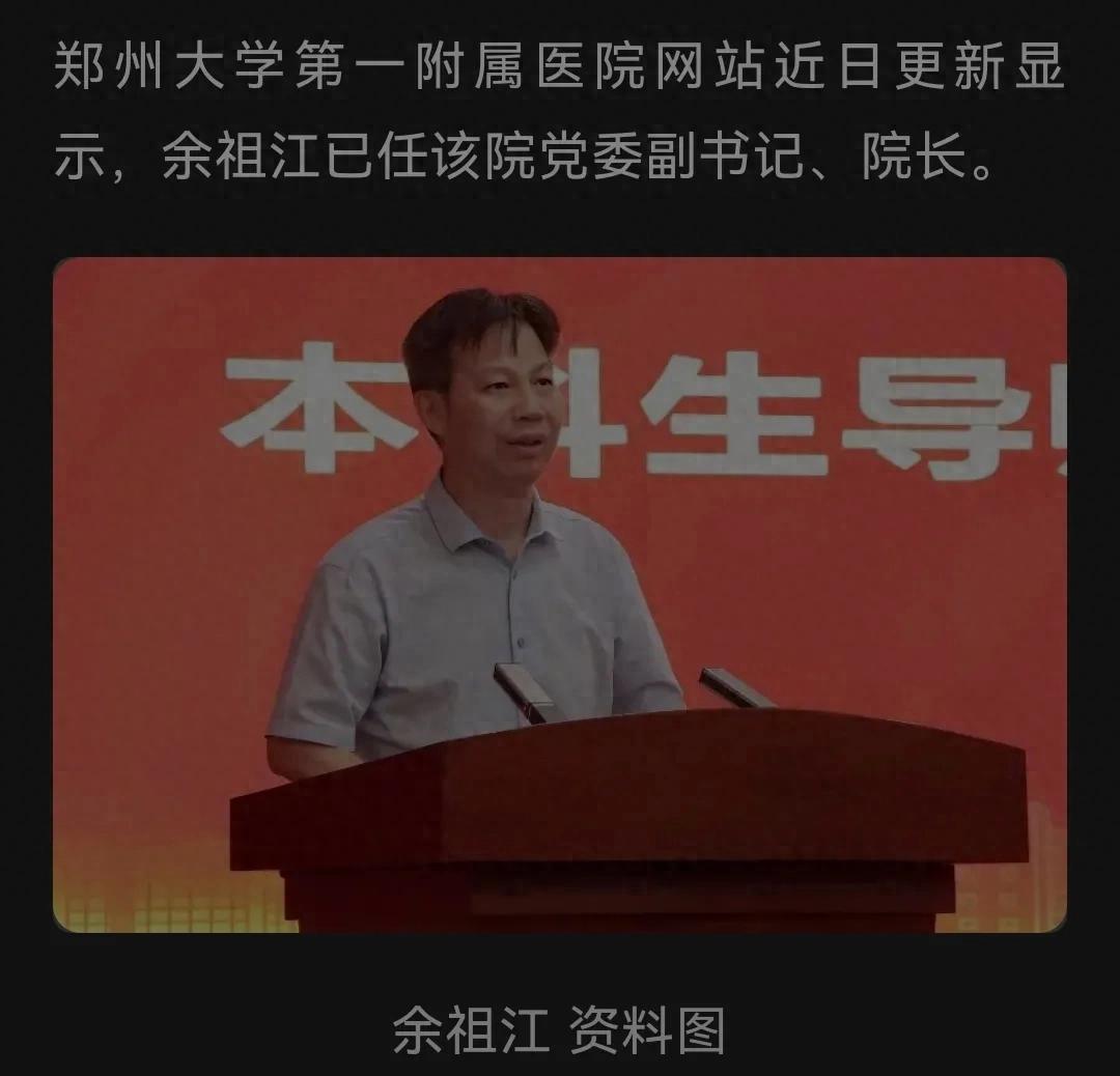 8月16日,鄭州大學第一附屬醫院官網更新顯示,余祖江教授正式出任該院黨委副書記、院長。這位深耕傳染病學二十余年的本土專家,接棒姜勇院長,執掌這艘擁有近百年歷史的醫療“航母”。