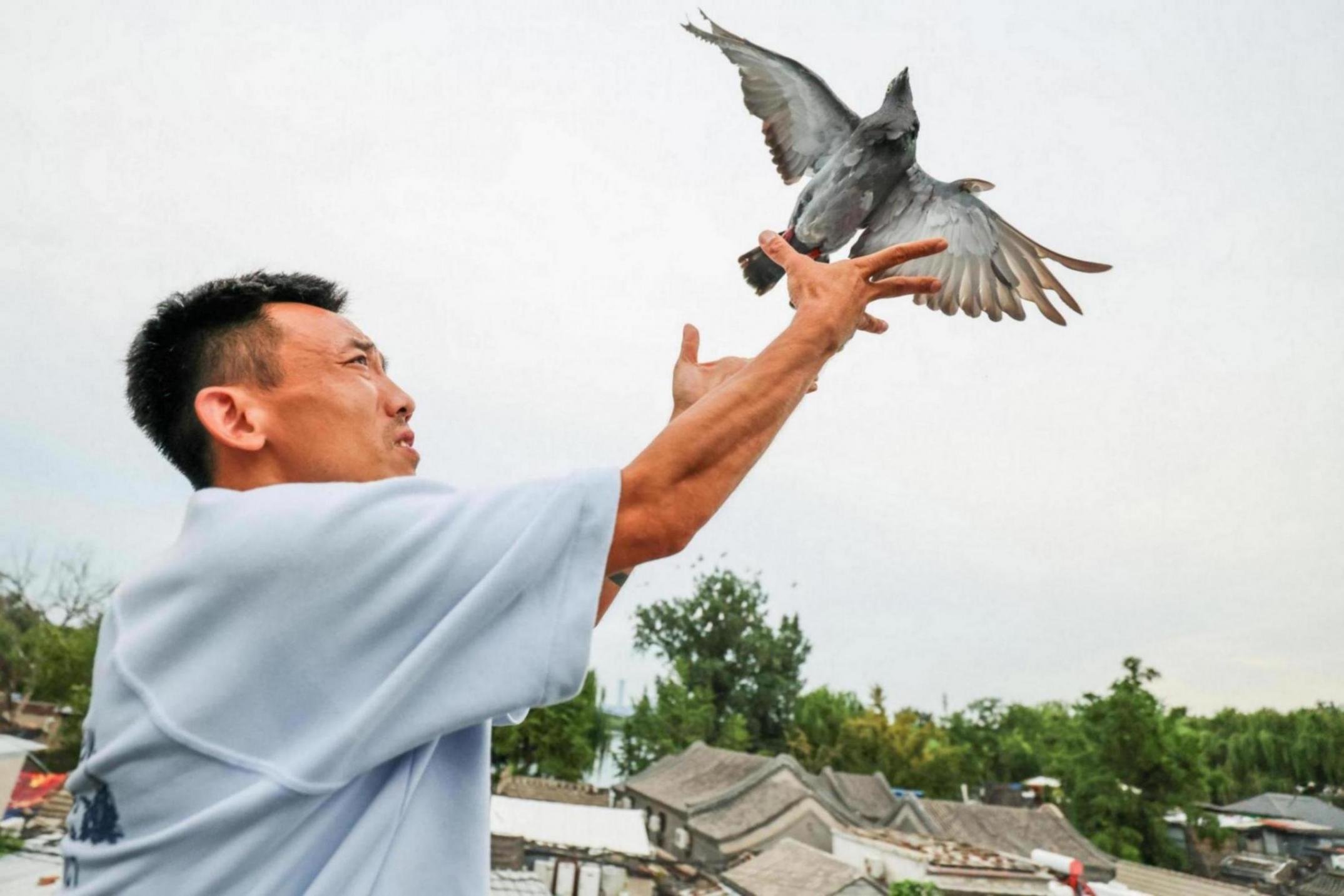 北京市信鴿協(xié)會秘書長孫鵬介紹,這8萬羽身體健康、體質(zhì)強健的和平鴿全部來自北京市的信鴿協(xié)會會員,9月2日下午開始,信鴿會員帶著和平鴿分別從東城、西城、豐臺、房山等10個區(qū)出發(fā),到各區(qū)收鴿地點集結(jié)交鴿。區(qū)信鴿協(xié)會逐羽檢查,并將所有和平鴿集中安置在12輛放飛車中。經(jīng)過一夜的等待,迎來了它們的放飛時刻。和平鴿籠車有很多貼心的設(shè)計,例如水槽、通風機等,放飛員還會適時為和平鴿補充水分,確保它們保持良好狀態(tài)。鴿籠車的擺放也有講究,“和平鴿在飛行中遇到障礙物會調(diào)頭,利用這個特點,和平鴿可以在廣場上空形成盤旋狀態(tài)。”孫鵬舉例,如果鴿籠車搭載的是來自通州的和平鴿,那么這輛車就會被放在廣場西側(cè),當和平鴿出籠朝東飛的時候,遇到朝西飛的和平鴿就會調(diào)頭,所有和平鴿就會在空中形成盤旋效果。