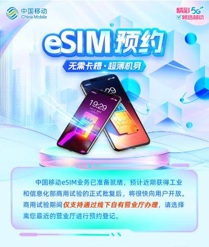 預約頁面顯示,中國移動eSIM業務已準備就緒,預計近期獲得工業和信息化部商用試驗的正式批復后,將很快向用戶開放。截至9月21日18時,預約頁面顯示“排隊人數已超15萬”,部分用戶反饋“提交后收到短信提示‘業務正式上線后將優先通知’”。