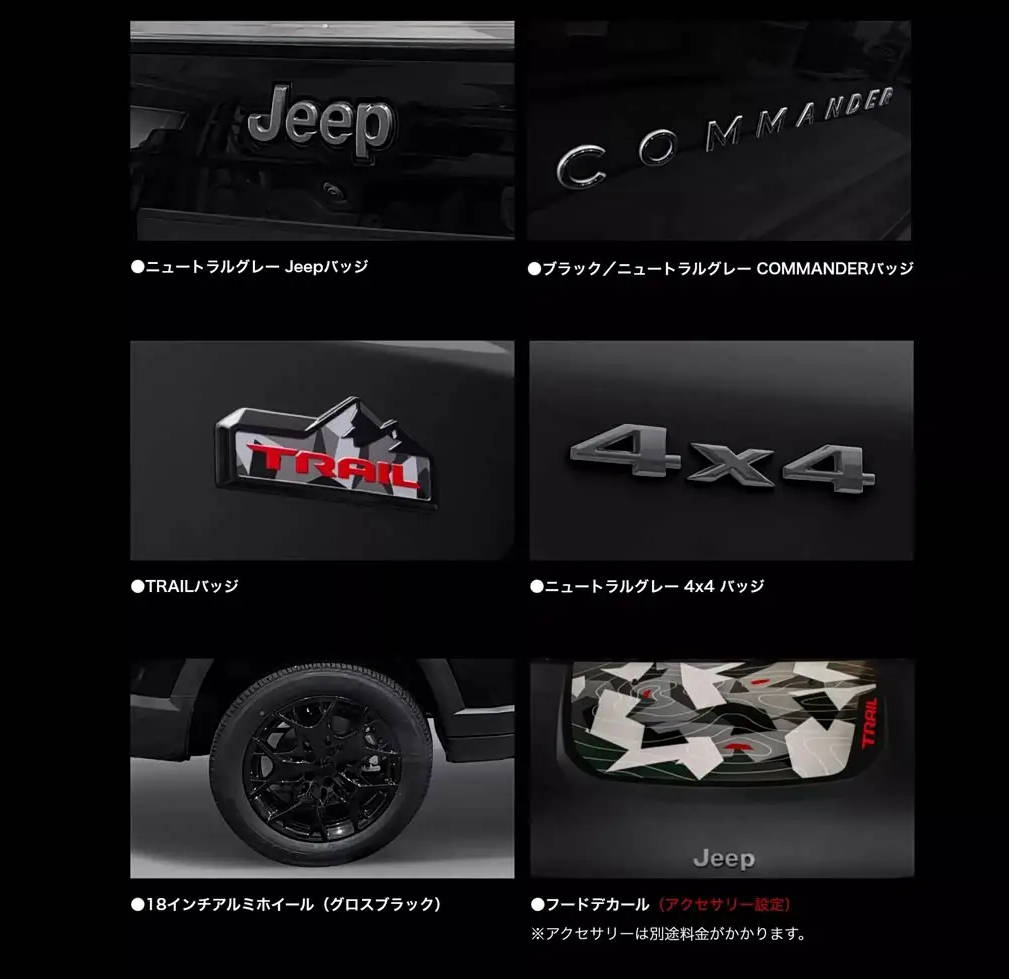 新車車身貼有紅色的TRAIL英文標識,并配有迷彩設計,彰顯限量版的獨特身份。車身側面配備18英寸熏黑輪圈,與黑色車漆相呼應。