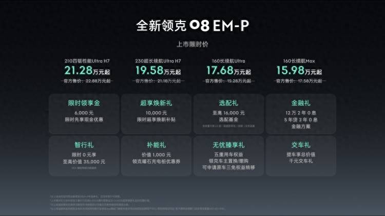 9月24日,“家庭豪華智混SUV”全新正式上市,以15.98萬元-21.28萬元的官方限時價,攜160長續航Max、160長續航Ultra、230超長續航Ultra H7、210四驅性能Ultra H7四款車型及8重限時福利,劍指20萬級高端混動SUV市場核心陣地。