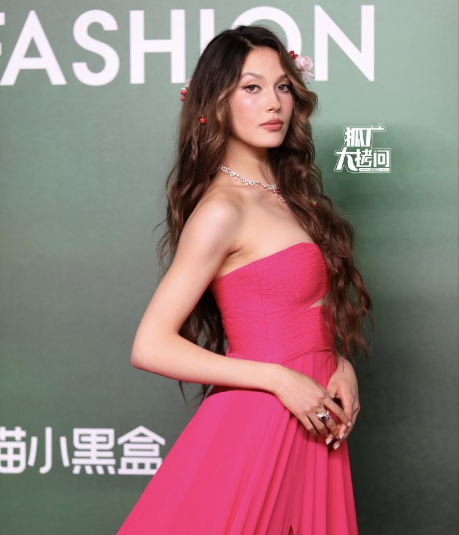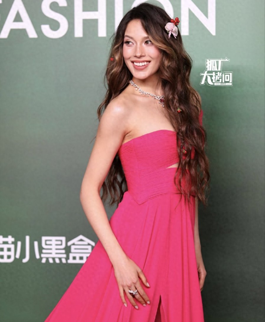 10月23日,谷愛凌一襲亮眼粉色長裙亮相VOGUE盛會。