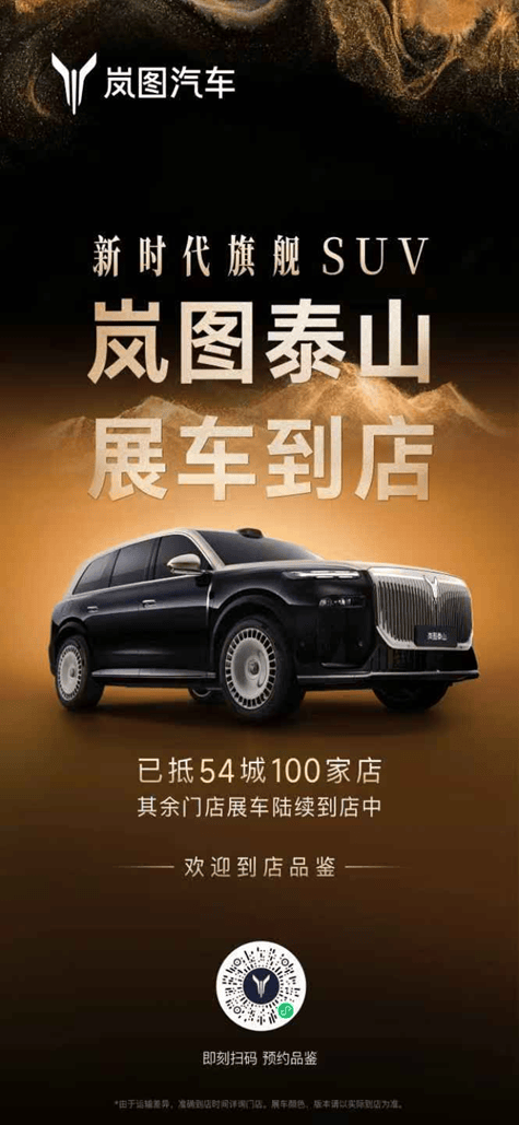 11月12日,首批量產(chǎn)車(chē)型已正式進(jìn)駐全國(guó)100家嵐圖空間與體驗(yàn)店,覆蓋北京、上海、深圳、武漢、成都、杭州等54座城市,標(biāo)志著嵐圖泰山正式步入全國(guó)用戶品鑒階段。