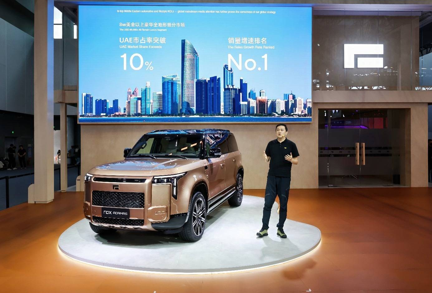極石汽車的全球化布局持續加速。截至目前,品牌已進入近40個國家市場,構建起覆蓋中東、中亞、北非的銷售網絡,并連續10個月保持銷量增長。在阿聯酋8萬美金以上豪華全地形SUV細分市場,其市占率突破10%,增速位居榜首。本屆車展期間,極石汽車與喀麥隆、突尼斯、摩洛哥三國合作伙伴簽署協議,進一步拓展非洲市場渠道。從完成“25000公里極石環游記”絲路季文化之旅,到為中東皇室定制信仰與美學融合的專屬座駕,極石汽車正以產品為紐帶,推動跨文化對話,讓“中國智造”的豪華理念獲得全球認可。